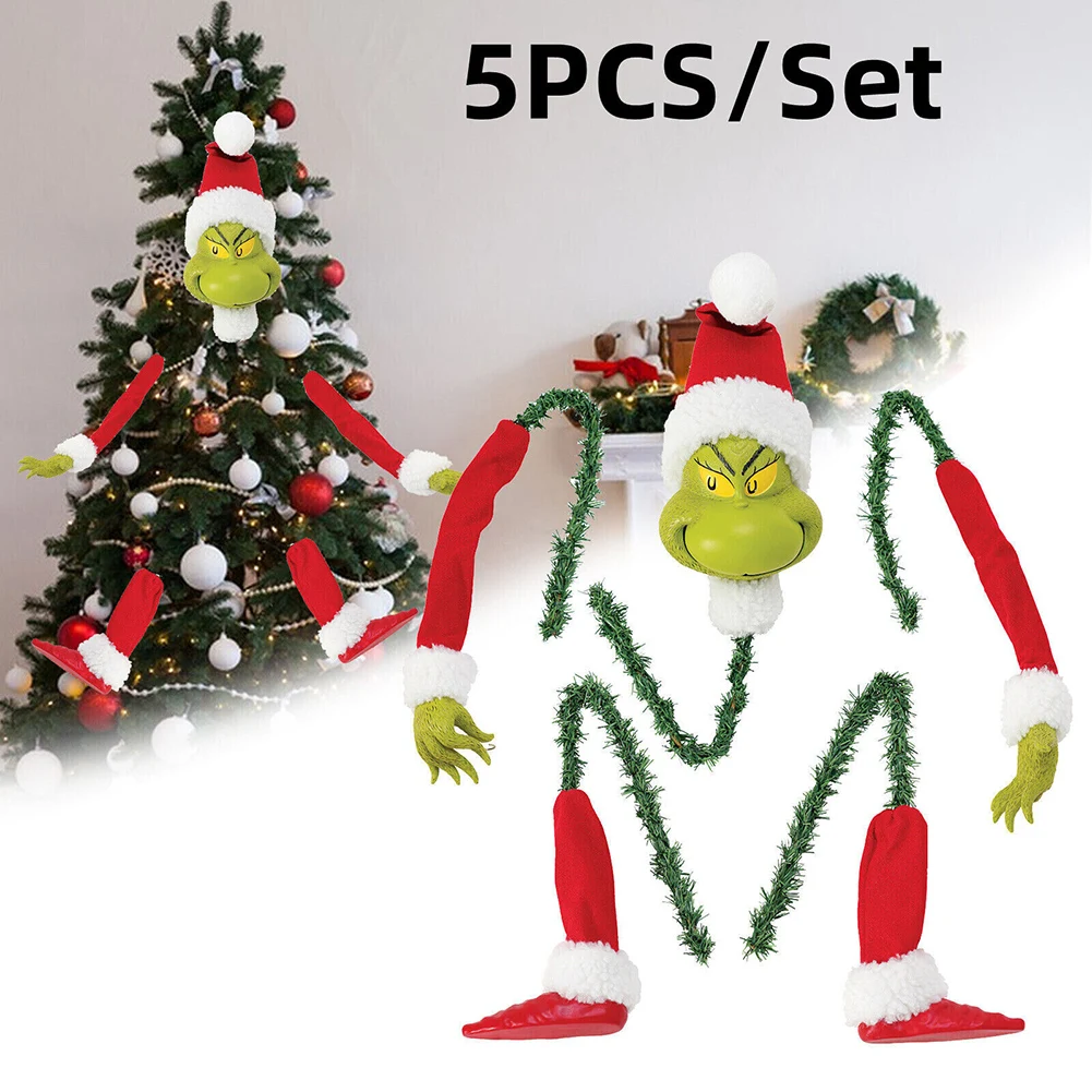 5PCS Arm Leg Head Ornaments Holder Head/Arms and Legs Grinch Stole Stuffed Stuck Topper Garland Ornament Xmas Elf Body Tree Decoration for Xmas Party for Christmas Tree