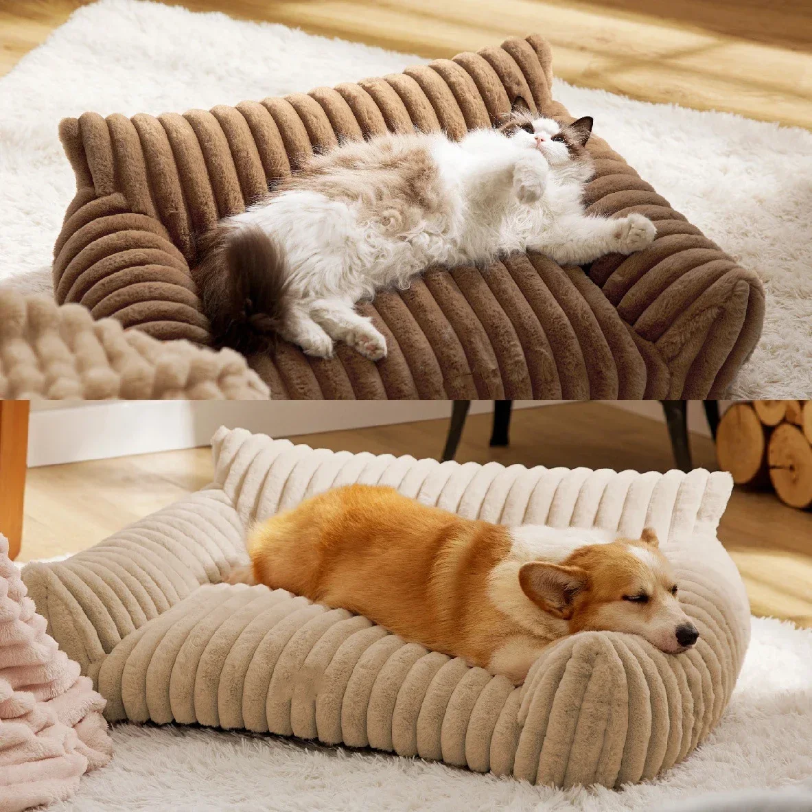 Cozy Warmth: Made with super soft faux fur material, this pet couch is warm and comfortable, perfect for autumn and winter. Your pet will love snuggling up in this cozy and luxurious bed, ideal for all seasons.