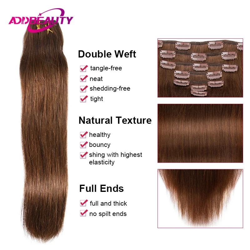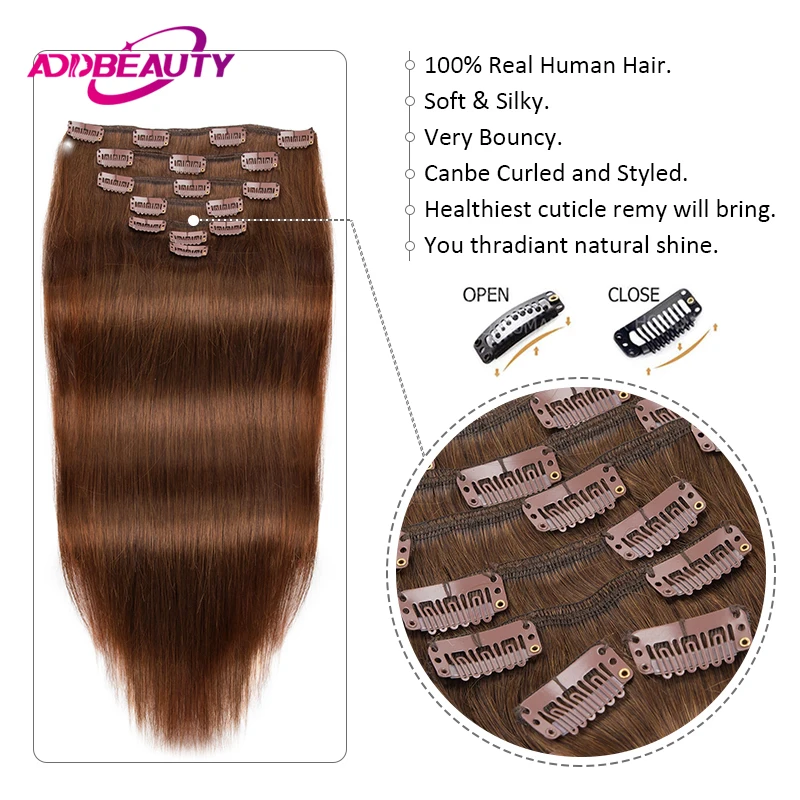 Straight Clip in Hair Extensions Human Hair 7pcs Clip in Full Head Human Hair Extension Clip-on Hair Human Natural Hairpiece 613