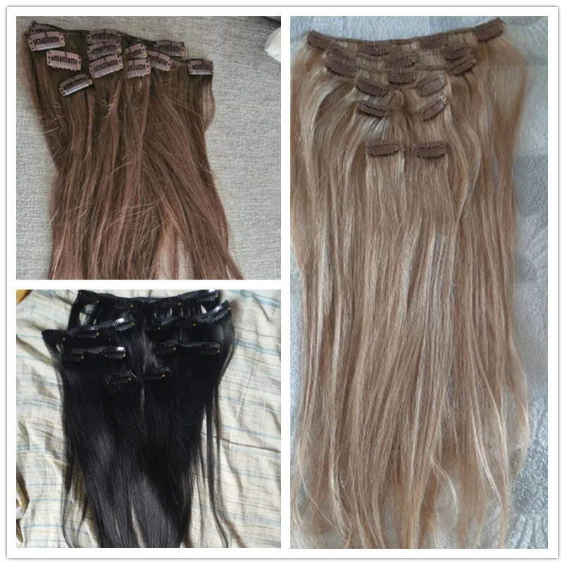 Straight 7 Clips in Full Head Human Hair Extension